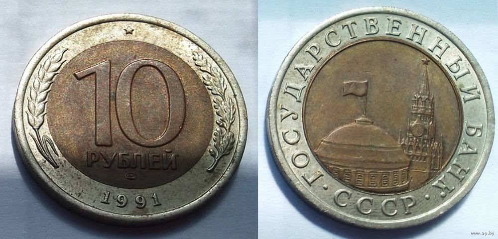 1 руб. - 1991, 10 руб. - 1991 - монеты ГКЧП