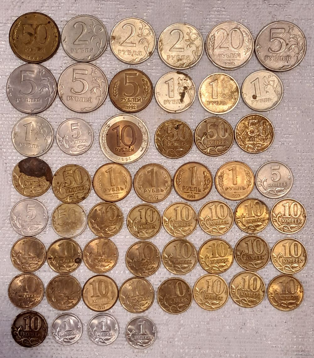 Монеты России, сборный лот, 1990-е, 53 штуки. Состояние на фото. Стандартный аукцион без минимальной цены.
