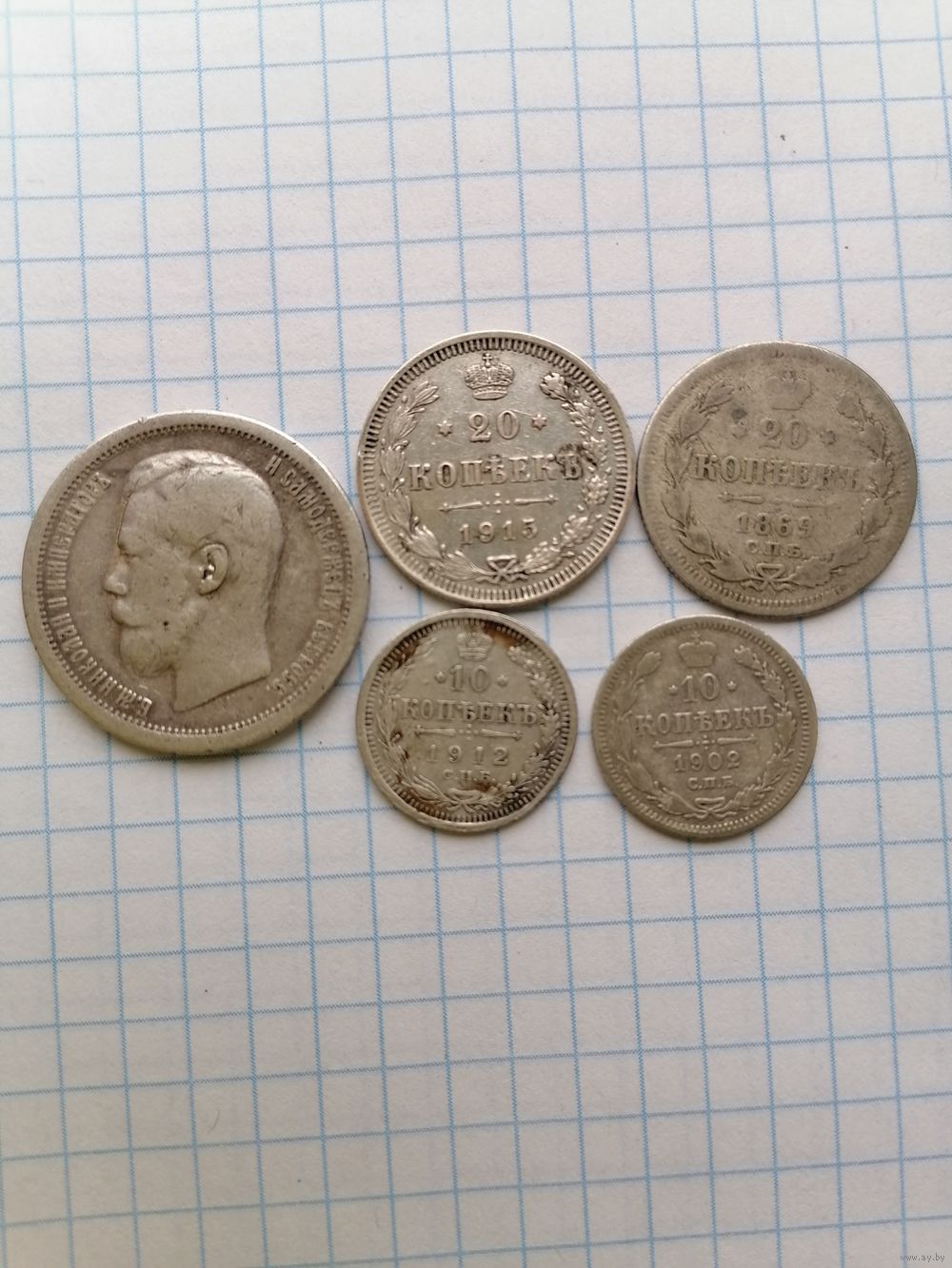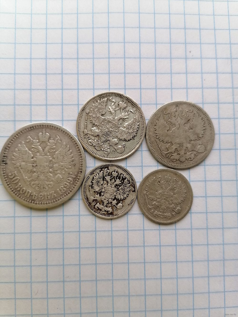 Лот российских монет в количестве 5 штук, серебро, состояние хорошее. Вышлю любой почтой после оплаты, в течении 2 дней.