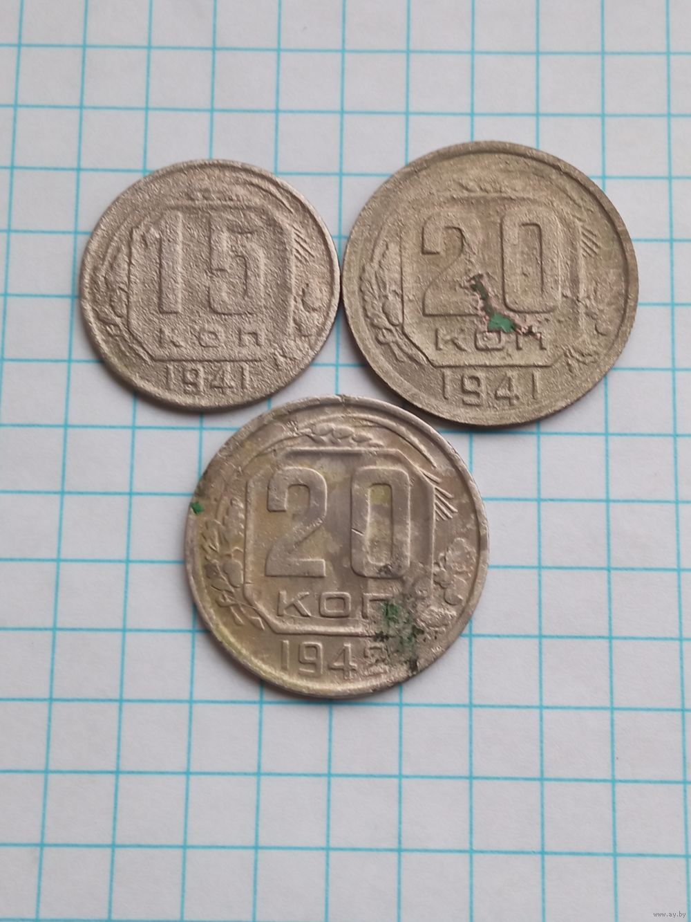 Монеты СССР 1941 , 1942 , 3 штуки .