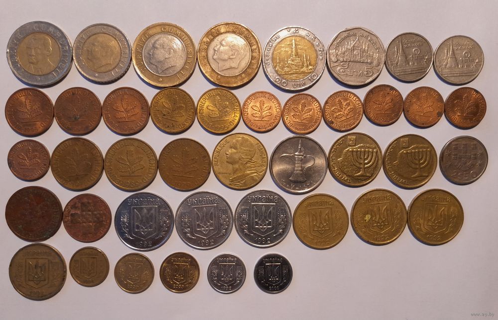 Монеты Турции, Тайланда, Германии, Франции, ОАЭ, Израиля, Португалии, Украины. 42 штуки одним лотом. Без минимальной цены.