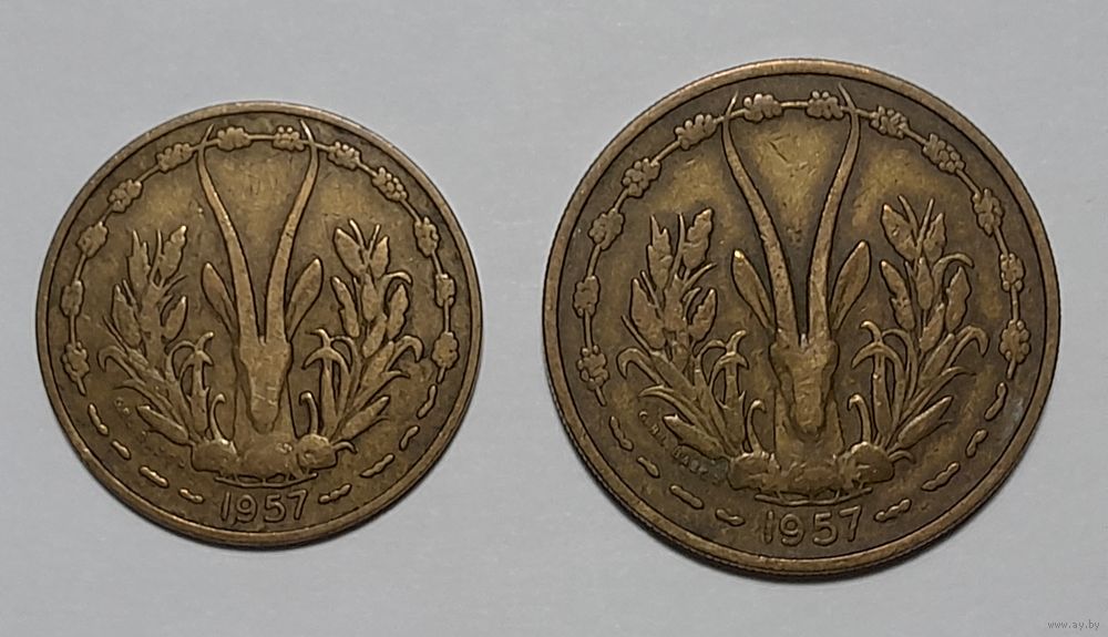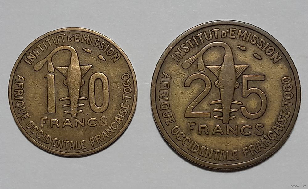 Французская Западная Африка и Того 10 и 25 франков 1957, годовой набор из 2 монет. Состояние на фото. Стандартный аукцион без минимальной цены.