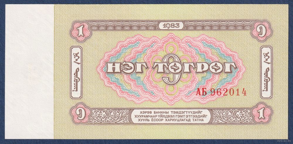 Монголия, 1 тугрик 1983 г, P-42 (AБ, главнокомандующий Дамдин Сухэ-Батор), UNC