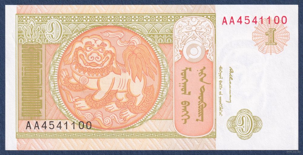 Монголия, 1 тугрик 1993 г, P-52 (AA, главнокомандующий Дамдин Сухэ-Батор), UNC