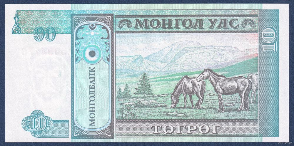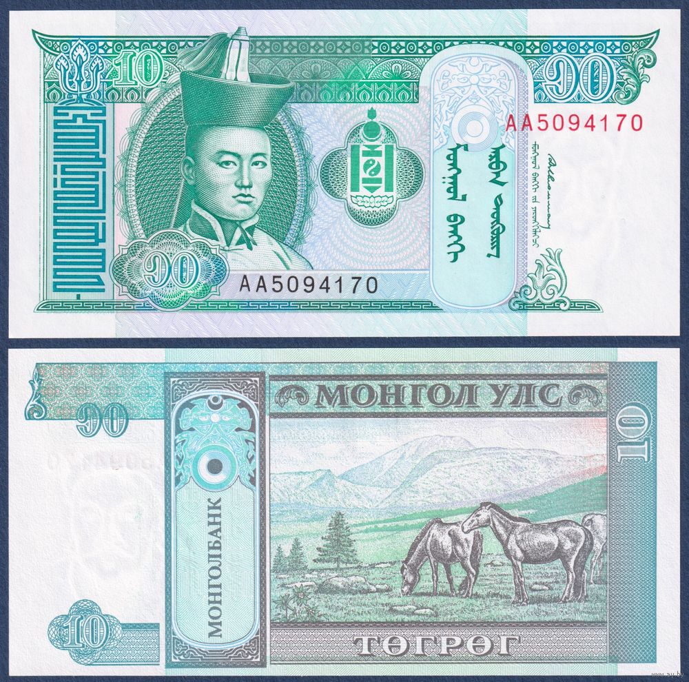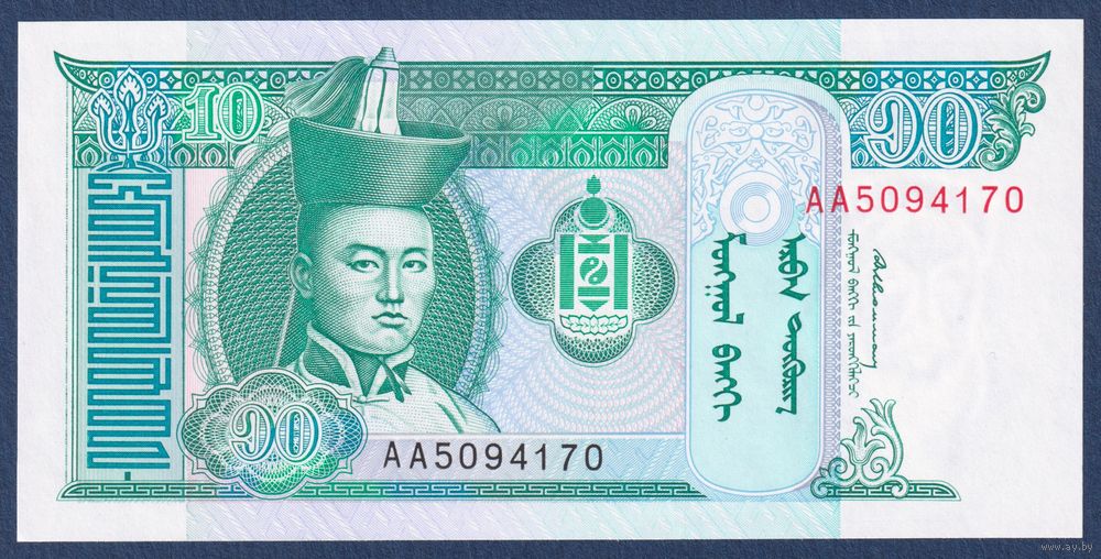 Монголия, 10 тугриков 1993 г, P-54 (AA, главнокомандующий Дамдин Сухэ-Батор), UNC