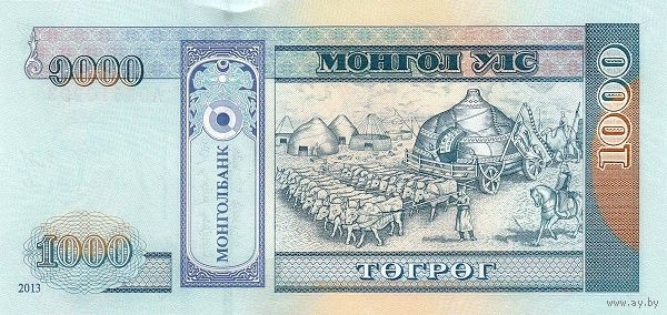 Монголия 1000 тугриков образца 2013 года UNC p67d серия АТ