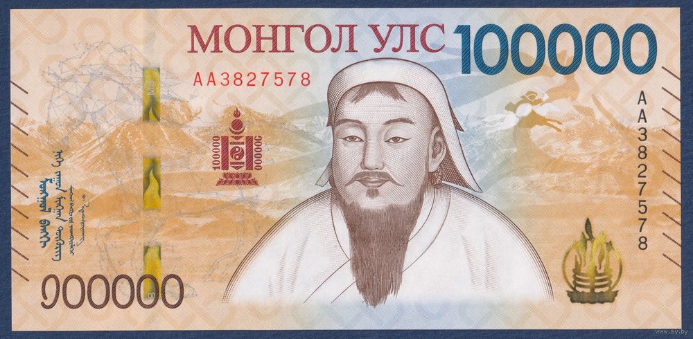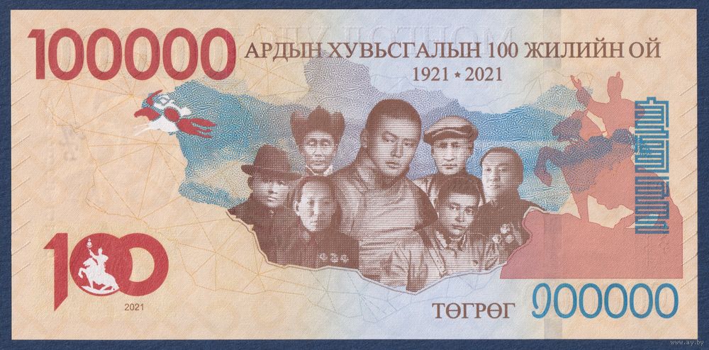 Монголия 100000 тугриков 2021 (2025) г, P-W81(1) (АА, памятная - 100-летие народной революции), UNC