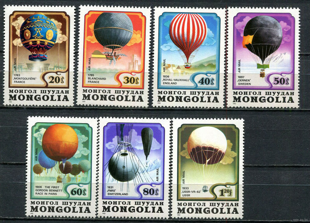 Монголия - 1982 - 200-летие Авиации. Воздушные шары - [Mi. 1522-1528] - полная серия - 7 марок. MNH. (Лот 55JA)-TG3P43