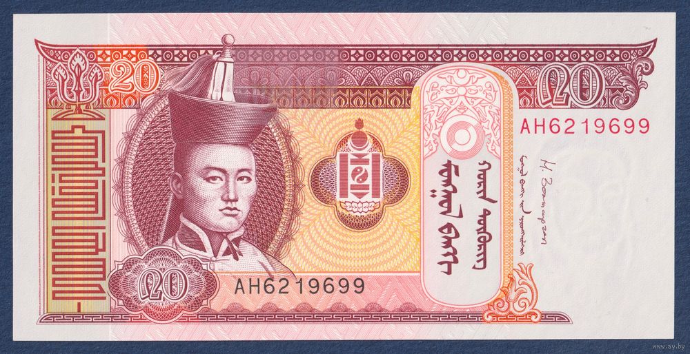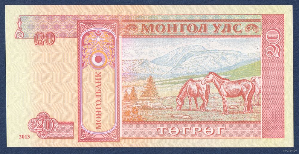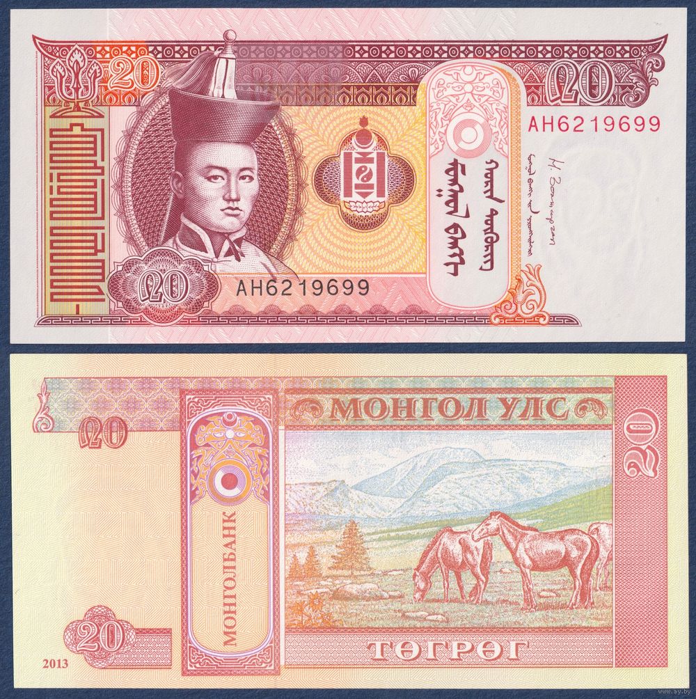 Монголия, 20 тугриков 2011 г, P-63g (AH, Дамдин Сухэ-Батор, лошади), UNC