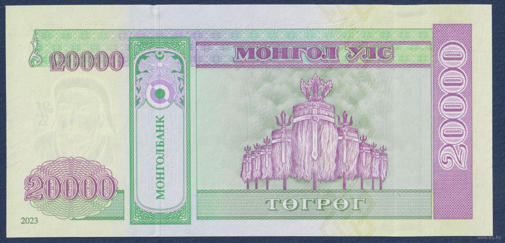 Монголия, 20000 тугриков 2023 г, P-W78 (AP, Чингисхан, флаги Золотой Орды), UNC