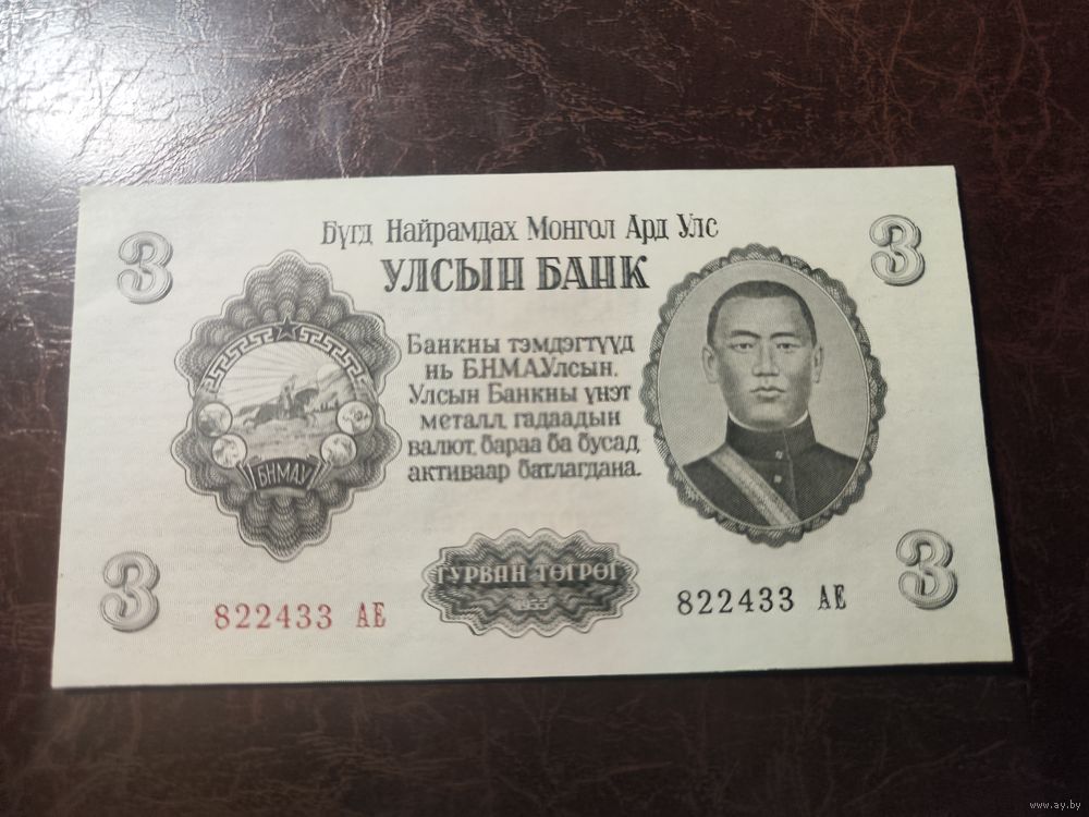 Монголия 3 тугрика образца 1955 года AUNC p29
