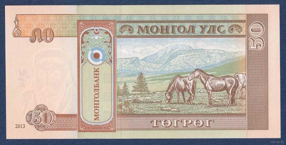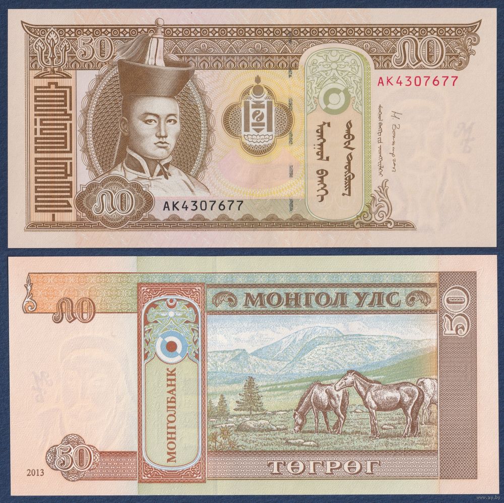 Монголия, 50 тугриков 2013 г, P-64c (AK, Дамдин Сухэ-Батор, лошади), UNC