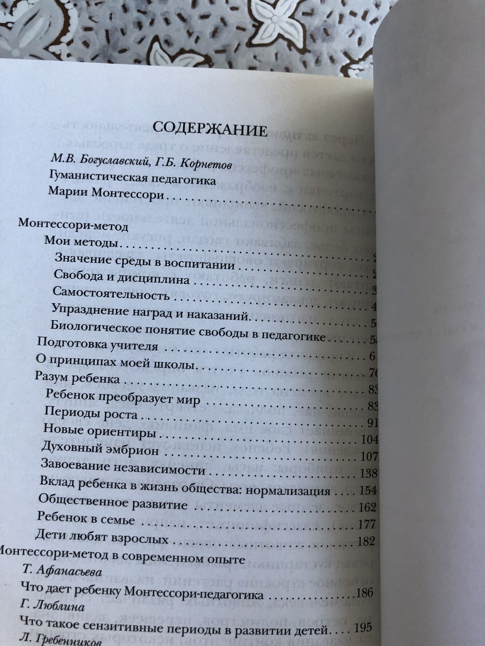 Замечательный итальянский педагог гуманист Мария Монтессори снискала мировую известность своим уникальным и действенным методом обучения и воспитания детей-дошкольников. Главное в этом методе - предоставление ребенку полной свободы самовыражения и действий. В книге представлены статьи М. Монтессори, а также работы современных педагогов - ее учеников и последователей, где даются конкретные советы и рекомендации для занятий с малышами. Издание предназначено педагогам дошкольных учреждений и родителям.