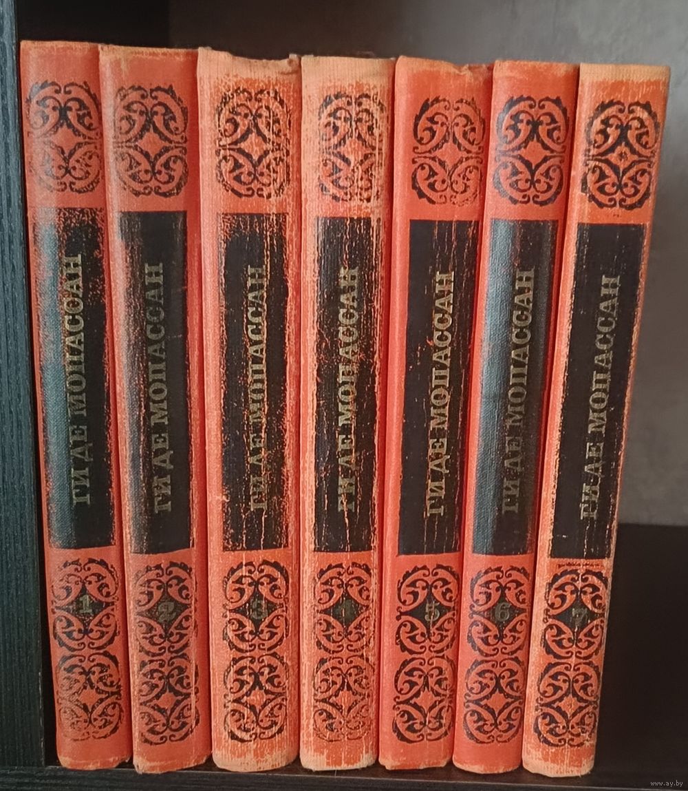 Ги де Мопассан. Собрание сочинений в 7 томах (комплект). Издательство Правда, Москва, 1977 (Библиотека огонёк) твёрдая обложка, обычный формат.