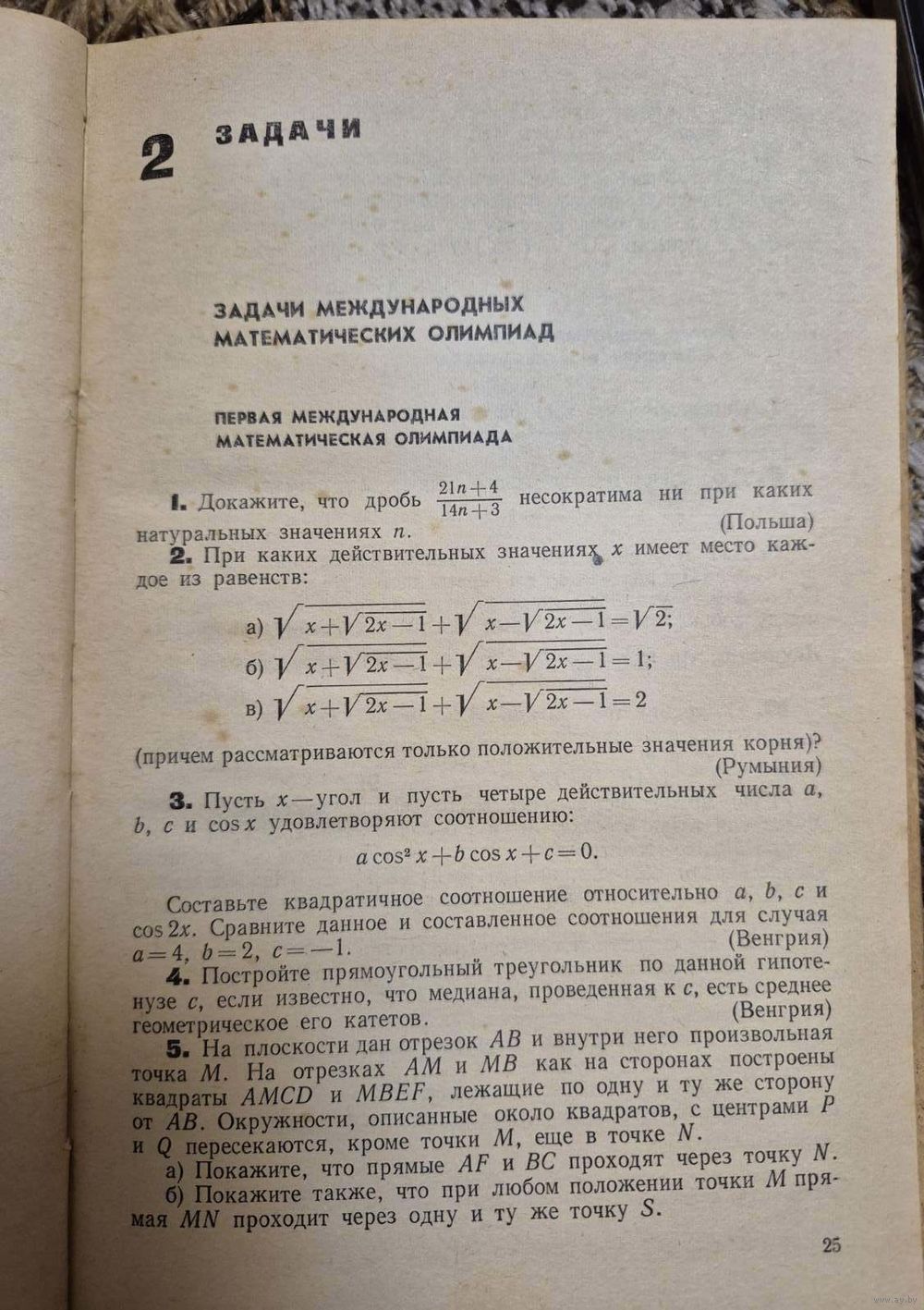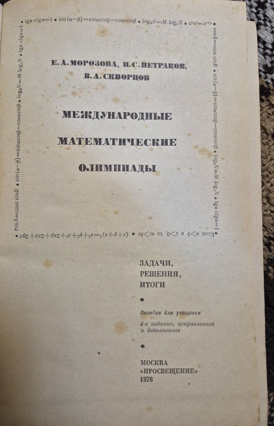 2. Морозова Е. А., Петраков И. С., Скворцов В. А. Международные математические олимпиады. Просвещение. 1976, 288 с.