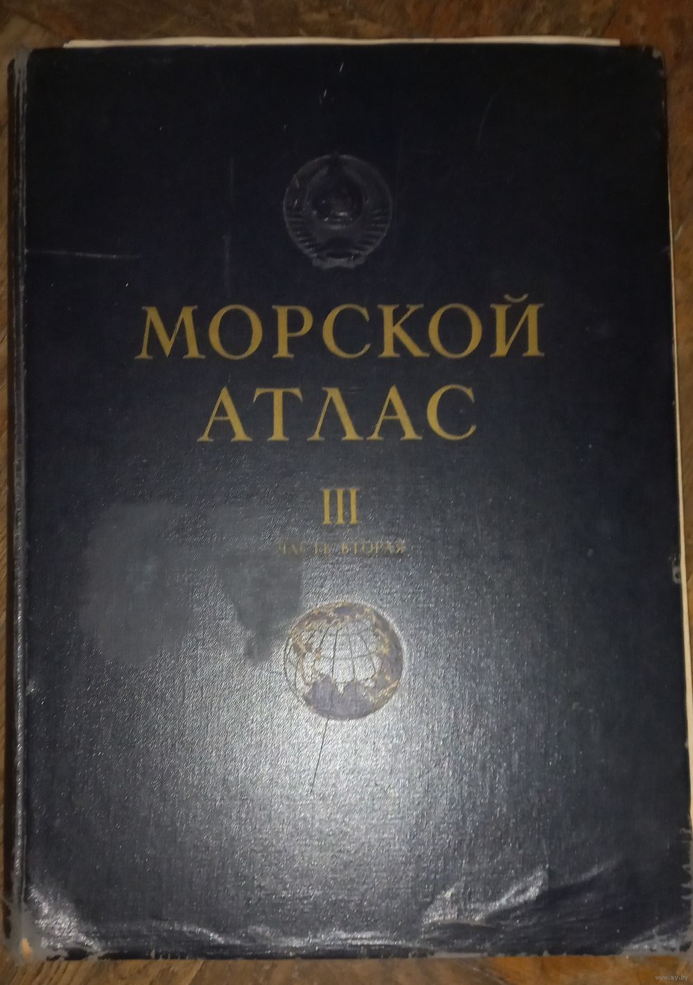 ,выпадает один лист с условными обозначениями потертости обложки и корешка. Морской атлас. Том 3. Военно-исторический. Часть вторая.