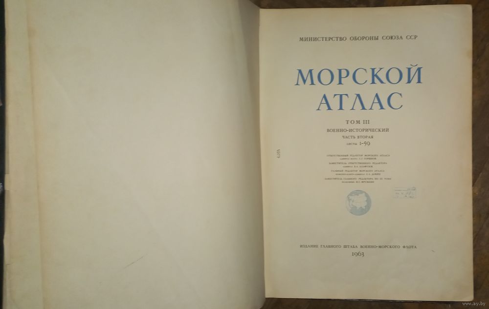 Содержание : «Морской атлас. Том 3. Военно-исторический. Часть вторая. Карты» — букинистическое издание, выпущенное Издательством Главного Штаба Военно-Морского Флота в 1963 году.
