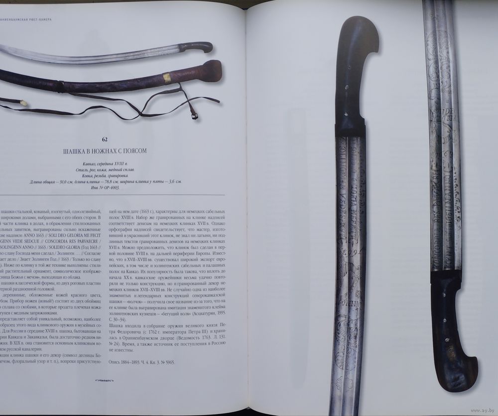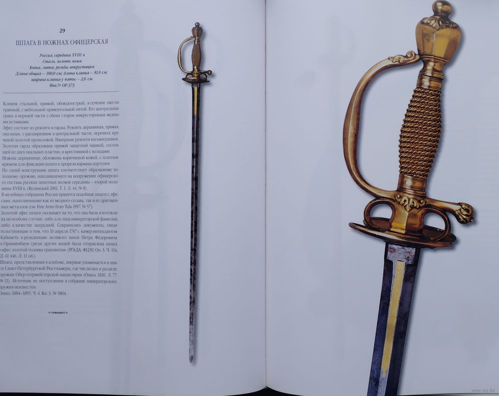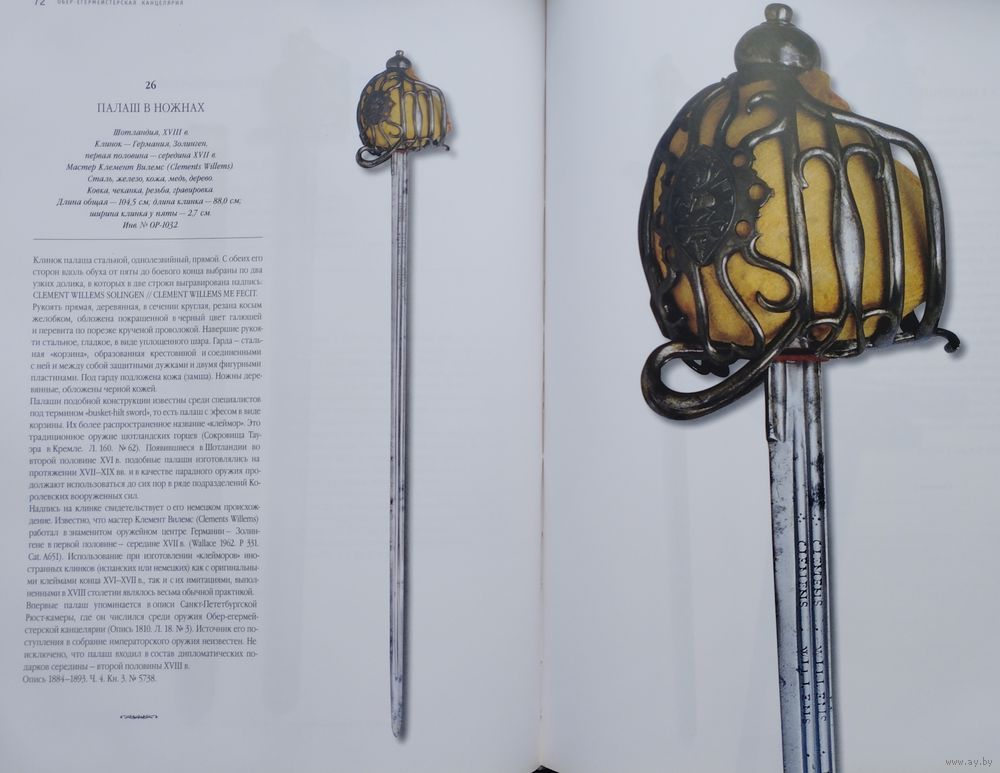 Подарочное издание. Большой энциклопедический формат. Мелованный альбом. Ляссе. Тираж 2000 экз. 248 стр. В настоящем альбоме представлено 100 наиболее характерных образцов огнестрельного и холодного оружия, а также снаряжения из этого уникального императорского собрания XVIII столетия. Следует отметить, что это первое издание, в котором подробно на основании архивных источников прослеживается история становления коллекции императорской Рюст-камеры. Альбом состоит из четырех разделов: "Собрание оружия императрицы Анны Ивановны"; "Обер-егермейстерская канцелярия"; "Ораниенбаумская Рюст-камера" и "Кабинет", - каждый из которых соответствует определенному этапу развития этой коллекции.