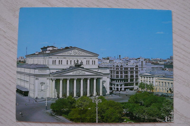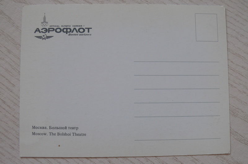 Москва. Большой театр; чистая, рекламная открытка, Аэрофлот, символ Олимпиады-80.