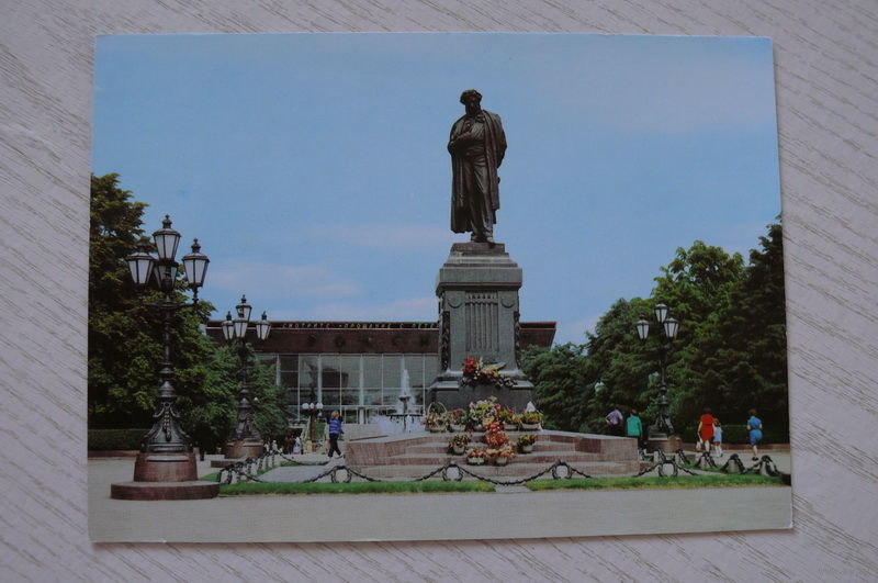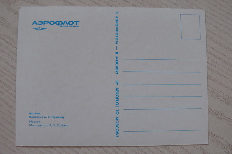 Москва. Памятник А.С. Пушкину; чистая, "С Аэрофлотом -- в Москву!" рекламная открытка.