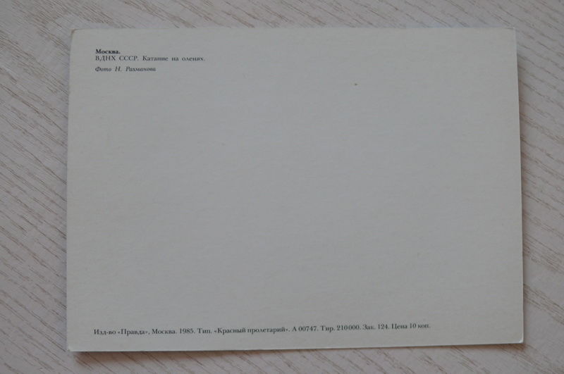 Москва. ВДНХ СССР. Катание на оленях; 1985, чистая.