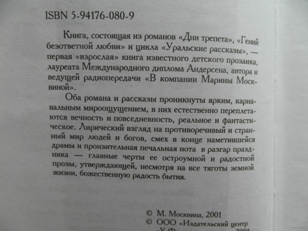 Так жизнь, отрицающая единую фабулу, непрерывна и неуловима: мерцание текста и сознания, ирония и серьезность, вера в чудо, а главное — неистребимое чувство юмора Марины Москвиной, где юмор не самоцель, а волшебная линза, сквозь которую кажутся нелепыми человеческие конфликты и преодолимыми человеческие драмы. А следовательно, автор, смеясь и плача, делает то, что удается не каждому алхимику в поисках философского камня.