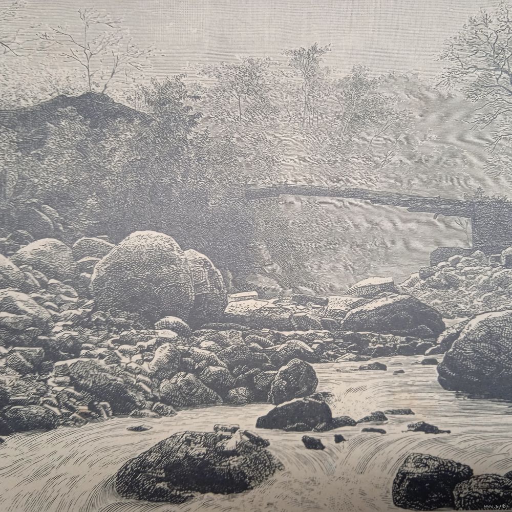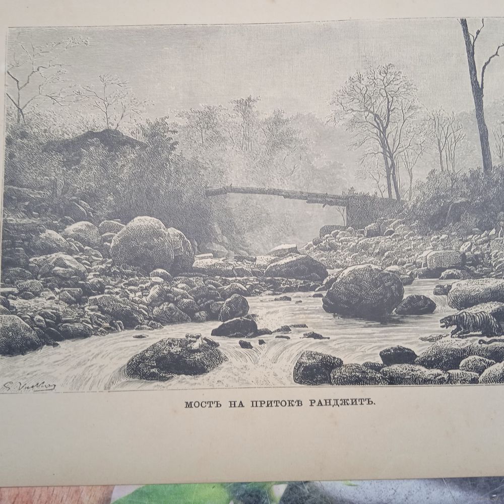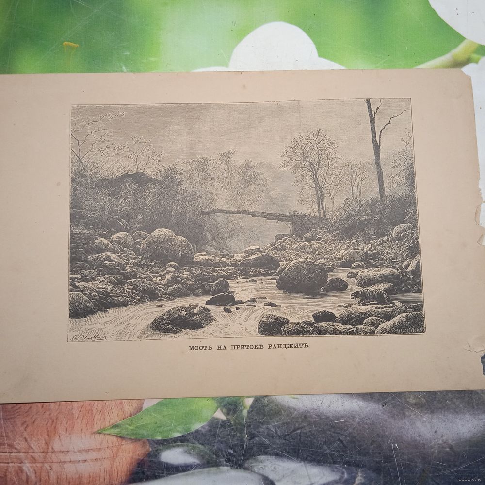МОСТЪ НА ПРИТОКЕ РАНДЖИТЪ. гравюра конец 19в.-20в. 27х17.5см.