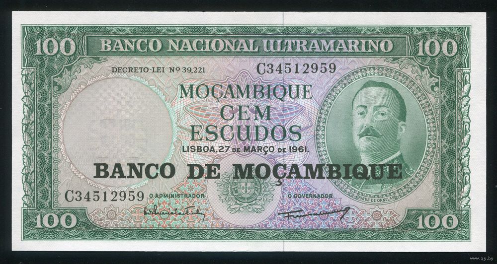 Мозамбик 100 эскудо 1976 г. P117. Серия C. UNC