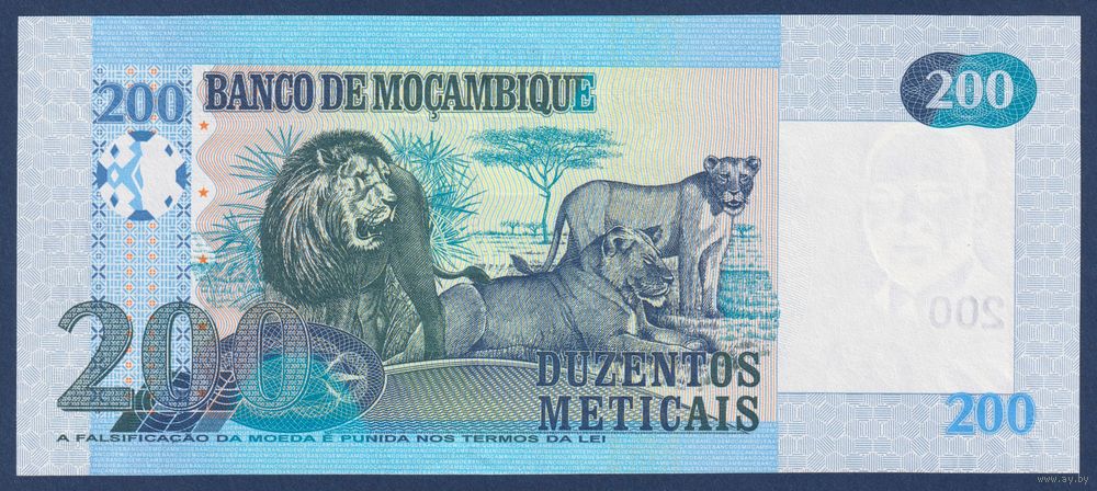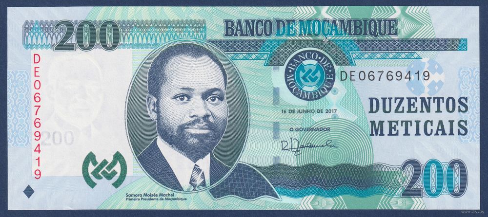 Мозамбик, 200 метикал 2017 г., P-152b (DE, президент Самора Машел, львы), UNC