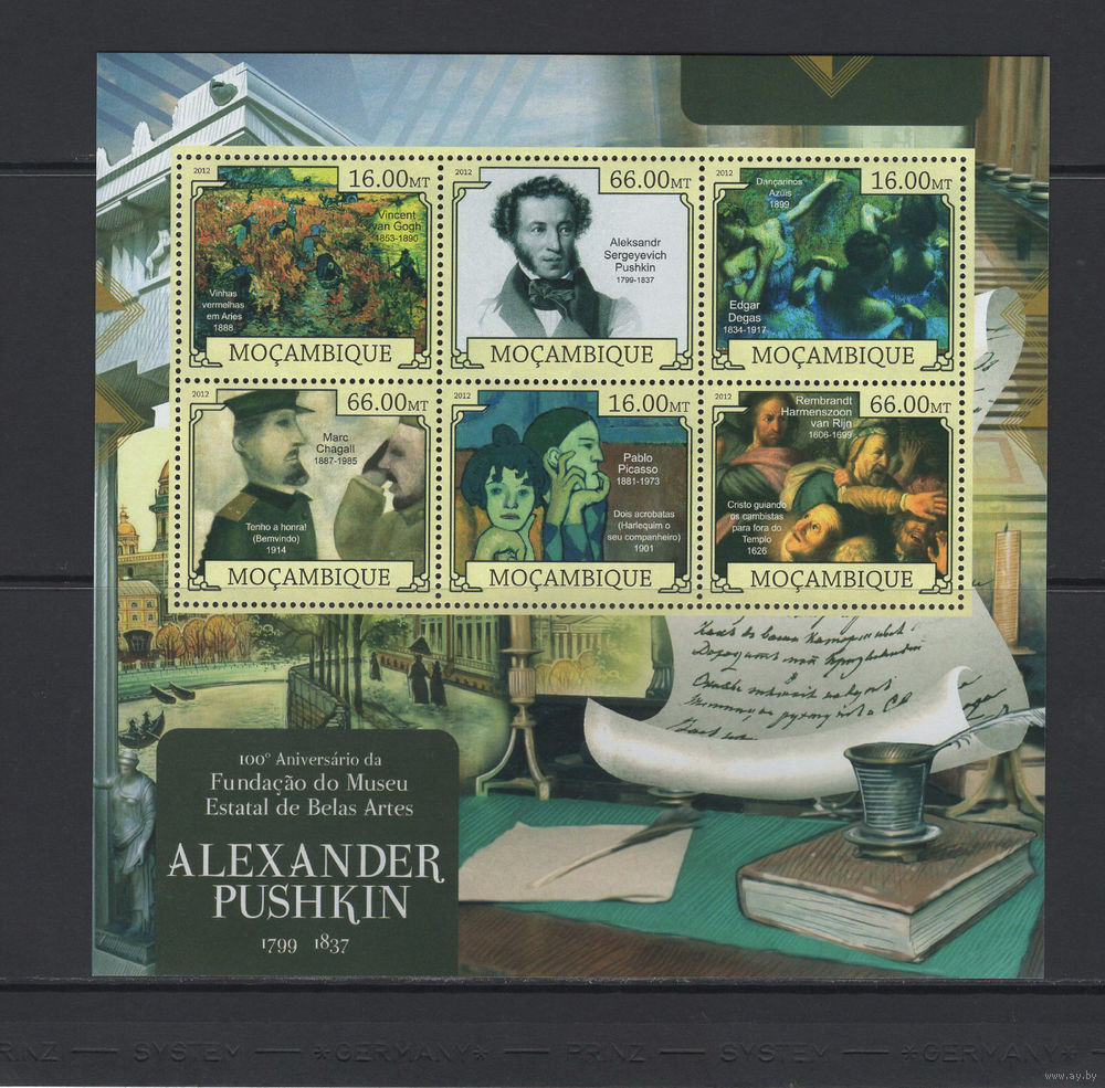 Мозамбик 2012** Живопись Художники Шагал Пикассо Дега Рембрант