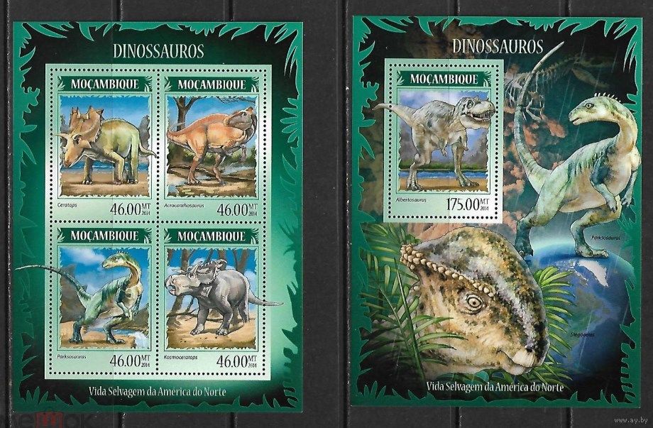 МОЗАМБИК 2014 СЕРИЯ Блоков динозавры рептилии фауна MNH