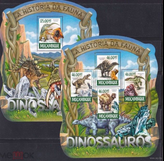 МОЗАМБИК 2015 СЕРИЯ Блоков динозавры рептилии фауна MNH