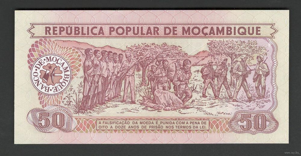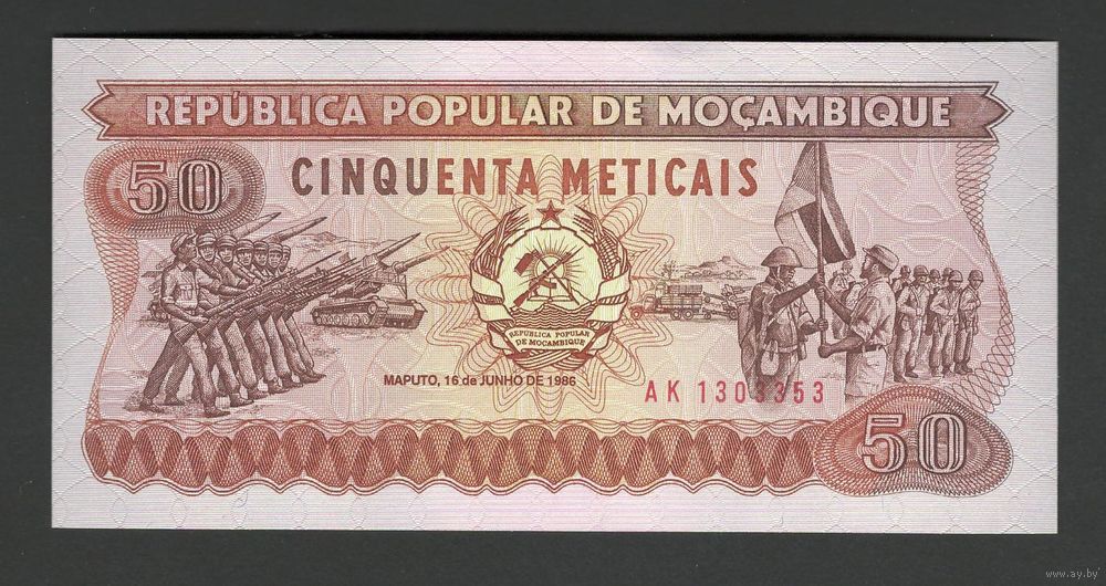 Мозамбик 50 метикал 1986 года. Тип Р-129b. Состояние UNC