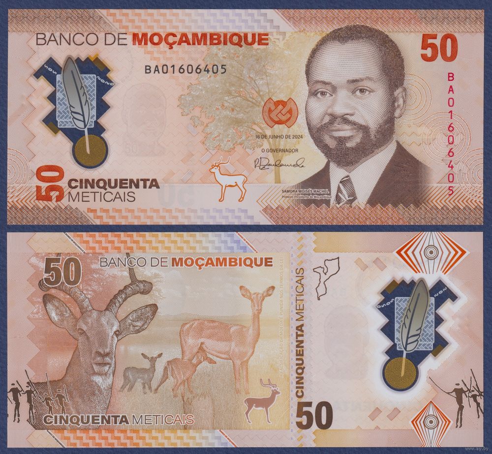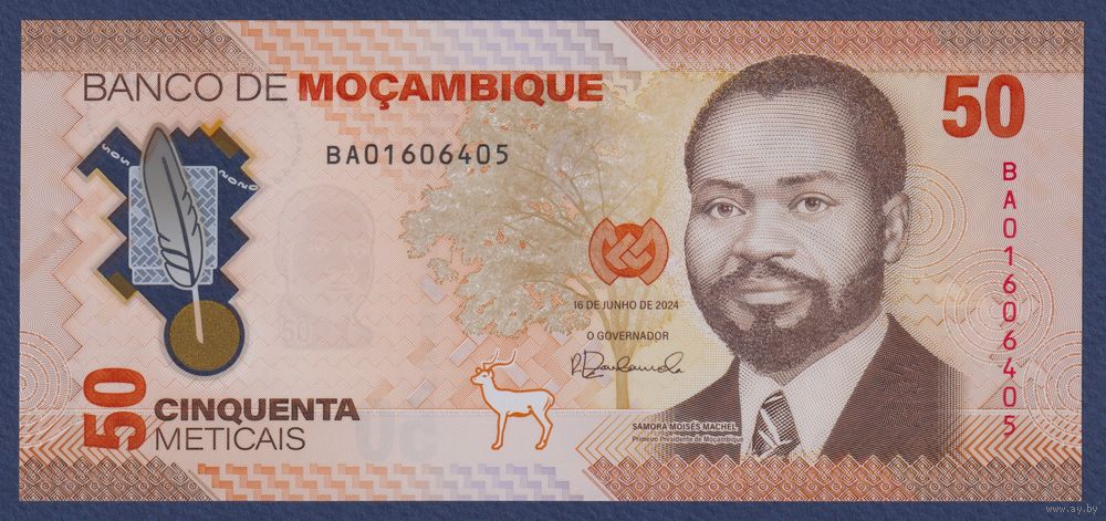 Мозамбик, 50 метикал 2024 г, P-W156 (BA, полимер, IBNS 2024, президент Самора Машел, антилопа куду), UNC