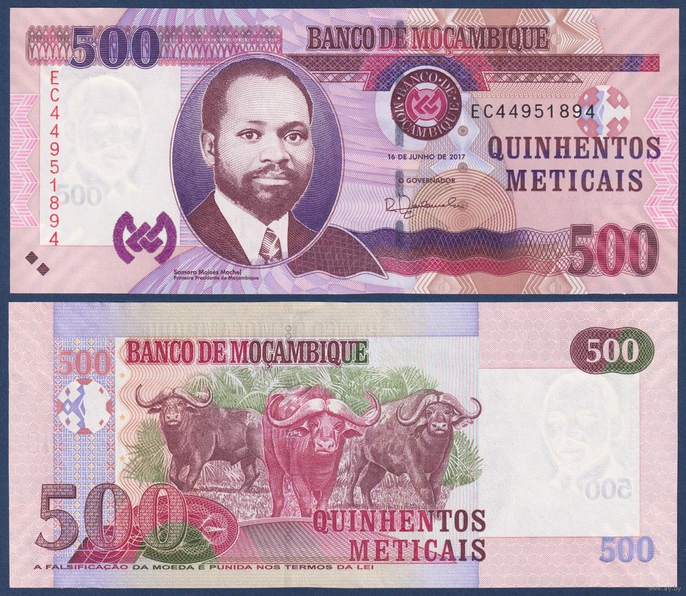 Мозамбик, 500 метикал 2017 г., P-153b (EC, президент Самора Машел, буйволы), UNC