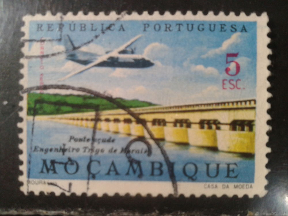 Мозамбик, колония Португалии, 1962. Самолет над мостом