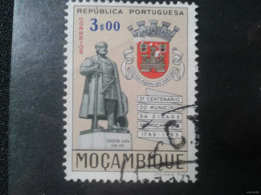 Мозамбик, колония Португалии, 1963. Памятник Васко де Гама, герб города Мозамбик