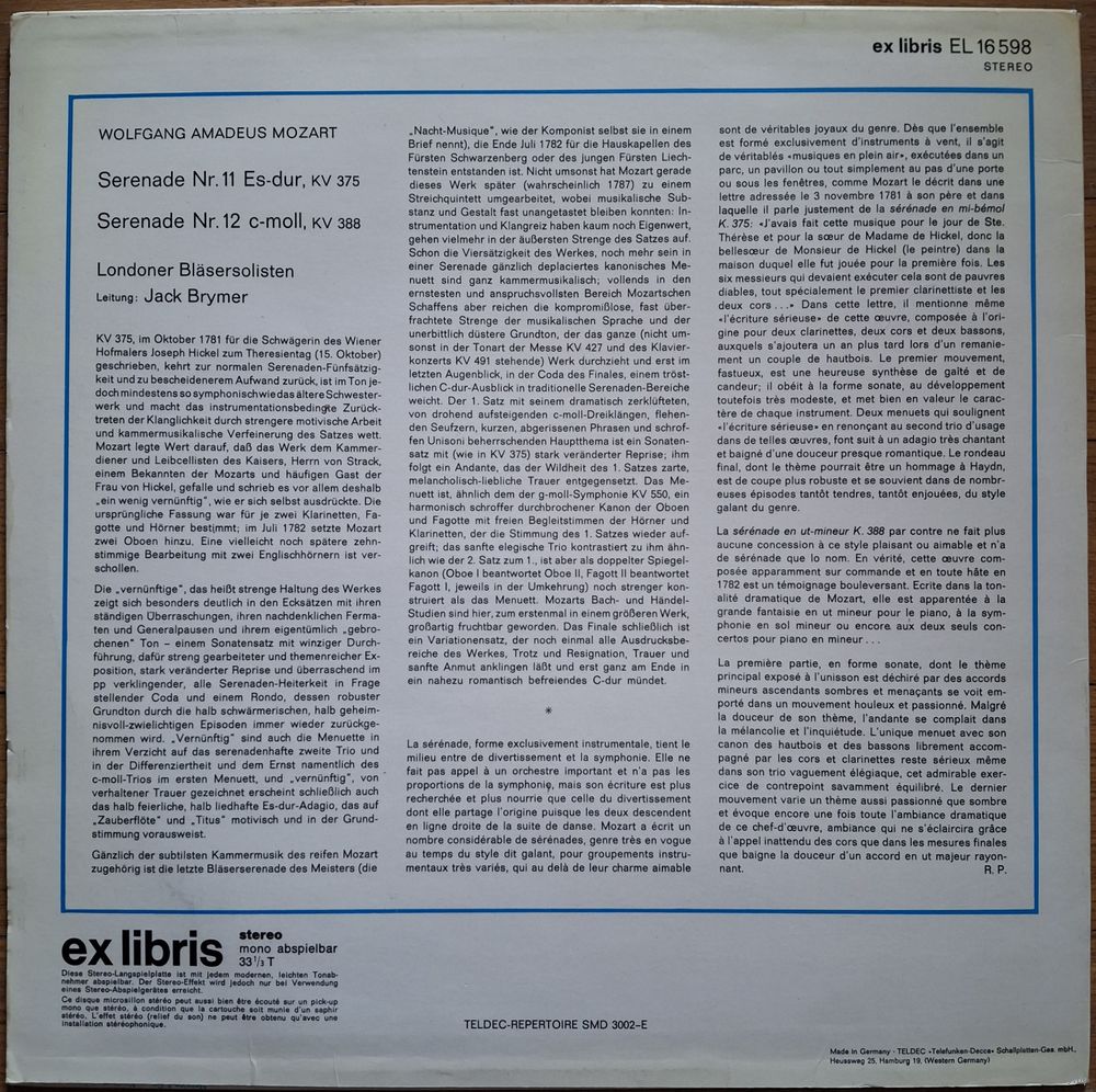 Mozart, Londoner Blaser-Solisten, Jack Brymer – Mozart Blaser-Serenaden (Serenade Es-Dur KV 375 Serenade C-Moll KV 388)