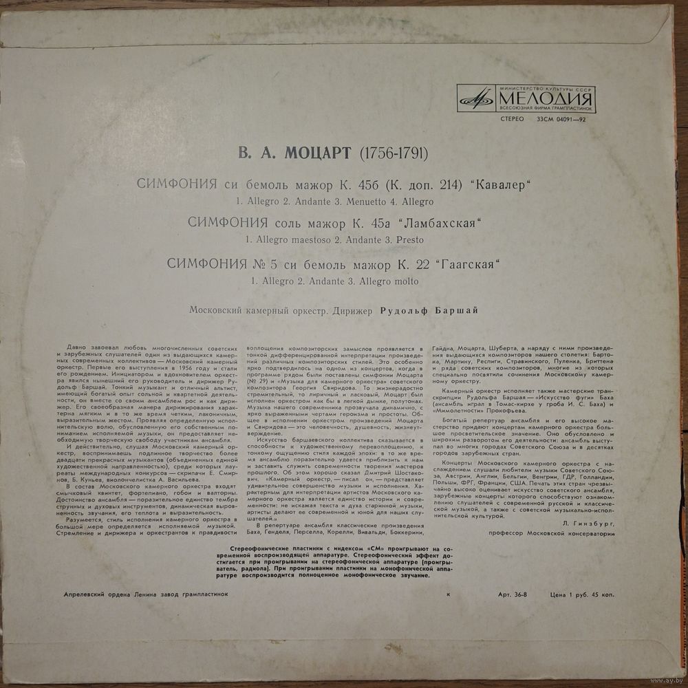 | Исполнитель | Moscow Chamber Orchestra , Conductor Rudolf Barshai |