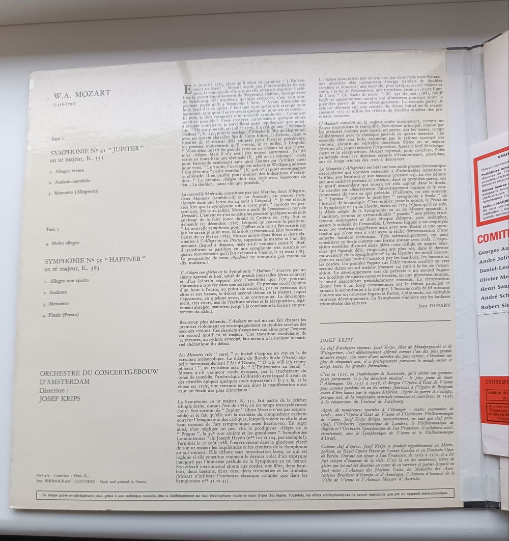 Mozart Symphonie no.41 ,, Jupiter" Symphonie no.35 ,,Haffner" Orchestre du Concertgebow d'Amsterdam Josef Krips (France)