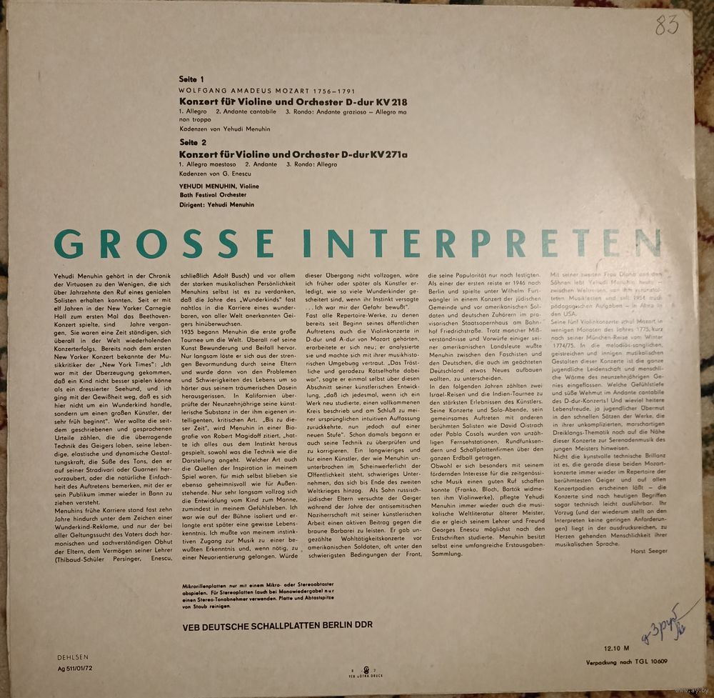 | Исполнитель | Yehudi Menuhin, Bath Festival Orchester |