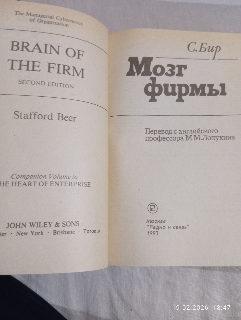 Мозг фирмы. Стаффорд Бир. М. Радио и связь 1993. 1е изд. Редкая. В хорошем состоянии, мягкая обложка. 415 с. Тираж 7000. Возможность отправки Белпочтой, полная предоплата на карту Беларусбанк