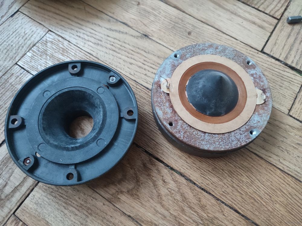 И есть еще непарный тоже спаленый драйвер ВЧ динамик MSS 44TX / 50Вт / 8Ом / 107дБ