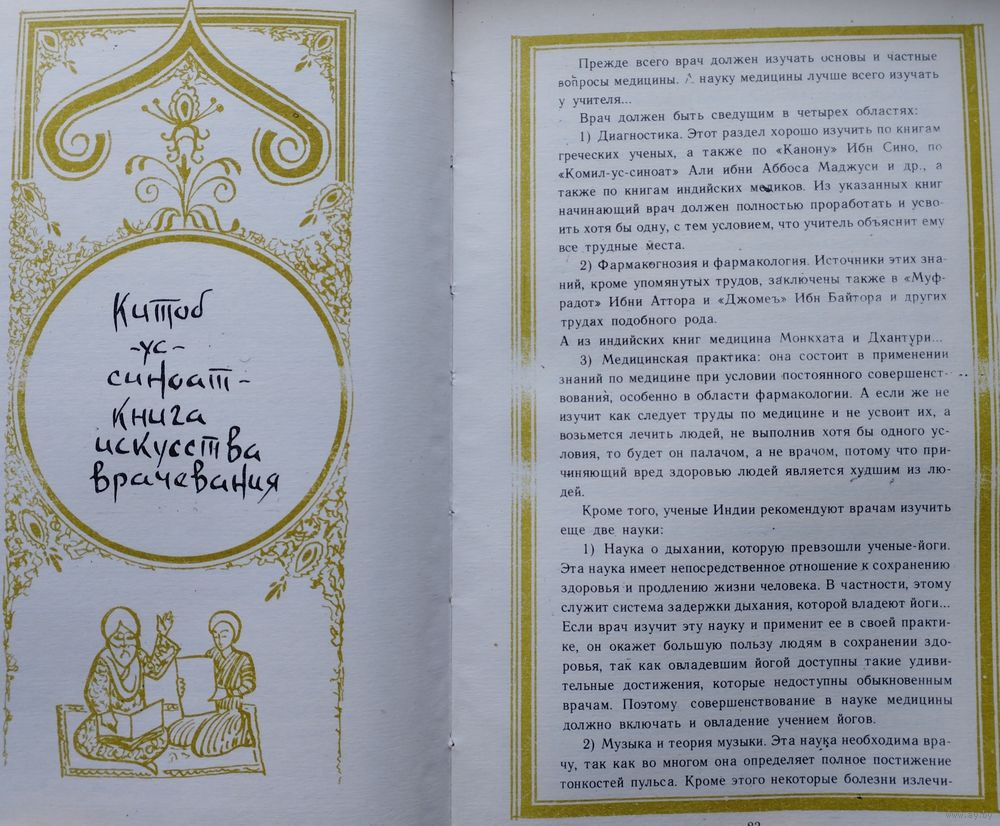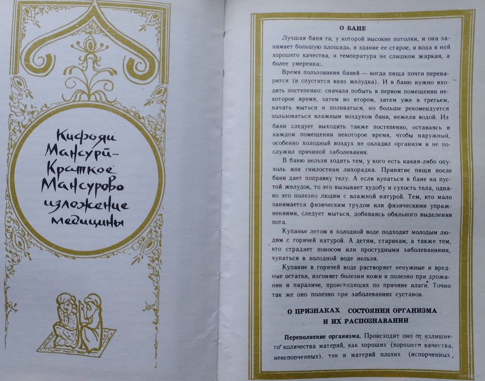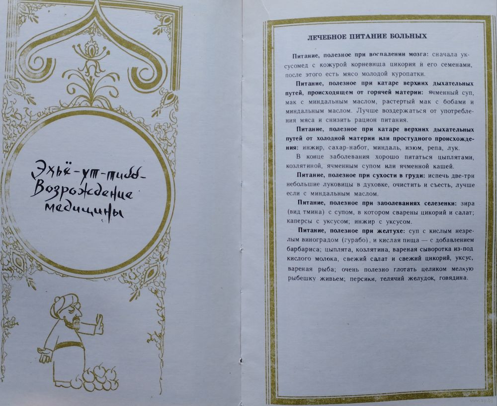 В приведенных в книге древних трактатах обобщен многовековой опыт таджикской, арабской, греческой и индийской медицины, представляющий интерес и в наше время. Книга освещает вопросы сохранения здоровья, профилактики заболеваний, лечебных свойств продуктов питания, овощей, фруктов и пряностей.