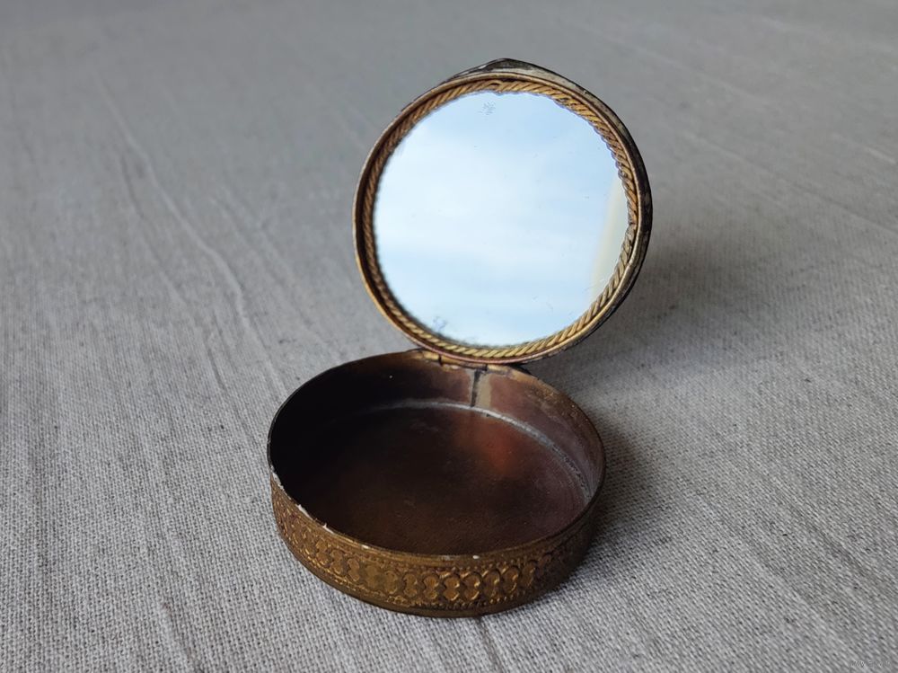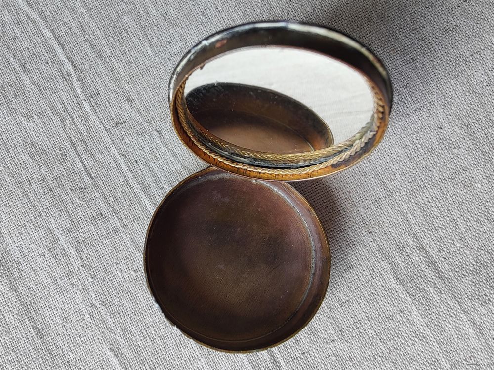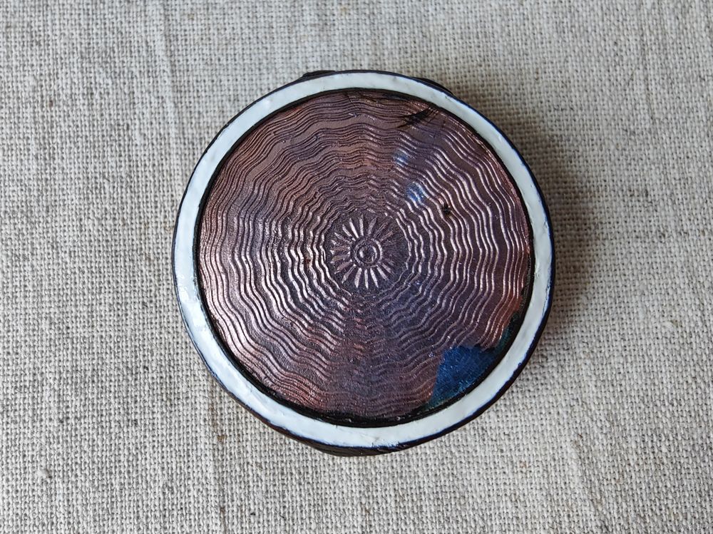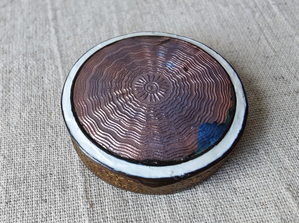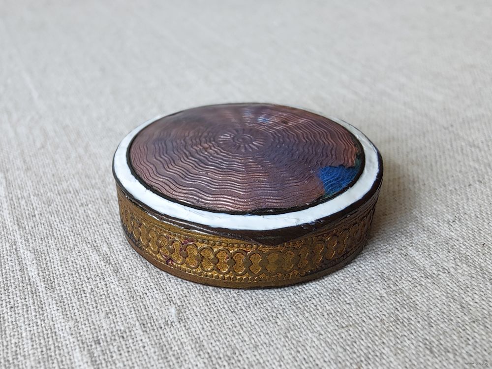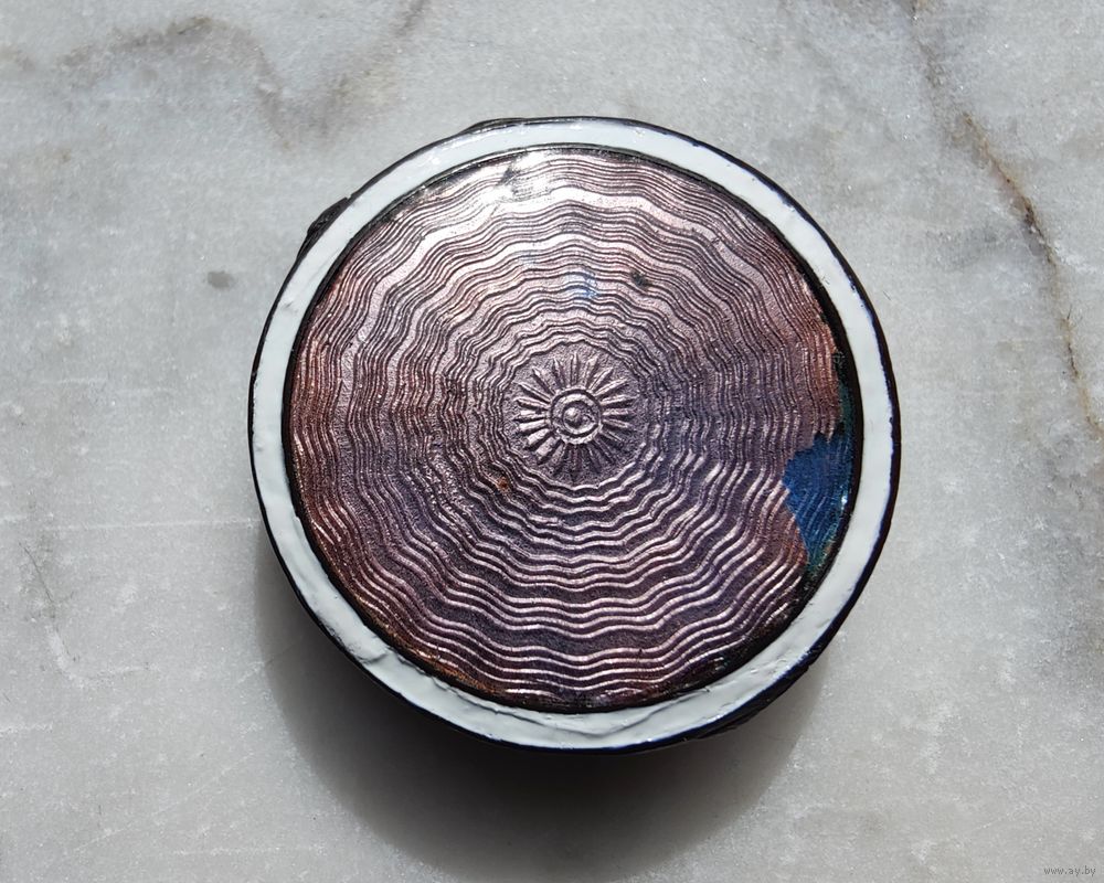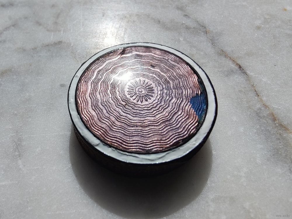 Мушница шкатулка пудреница таблетница Эмаль гильоше дореволюционная с зеркалом 3.5см