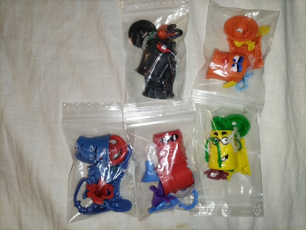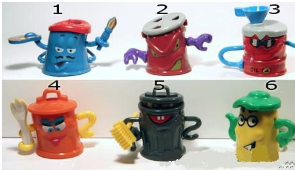 игрушки мусорки из тендер сюрпризов. В наличии те, что указаны на фото. Комплектность на фото. Мусор и резинки есть у всех. Игрушки новые, не царапаные. У художника наклеек нет. Вкладышей нет. Все вместе стоят 18р. Допфото сделаю по просьбе.
