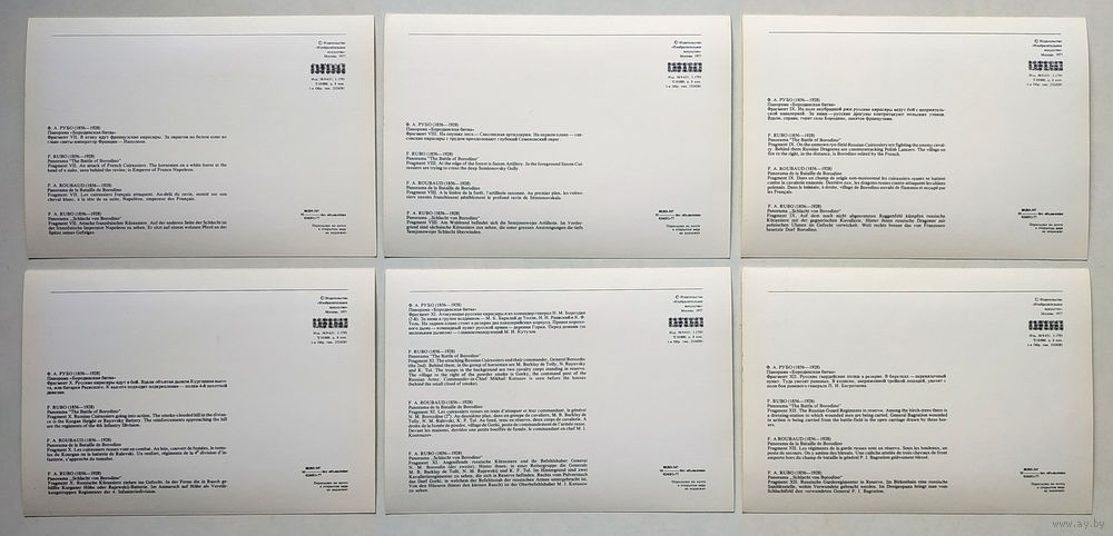 На обороте каждой открытки описание изображённого фрагмента.
