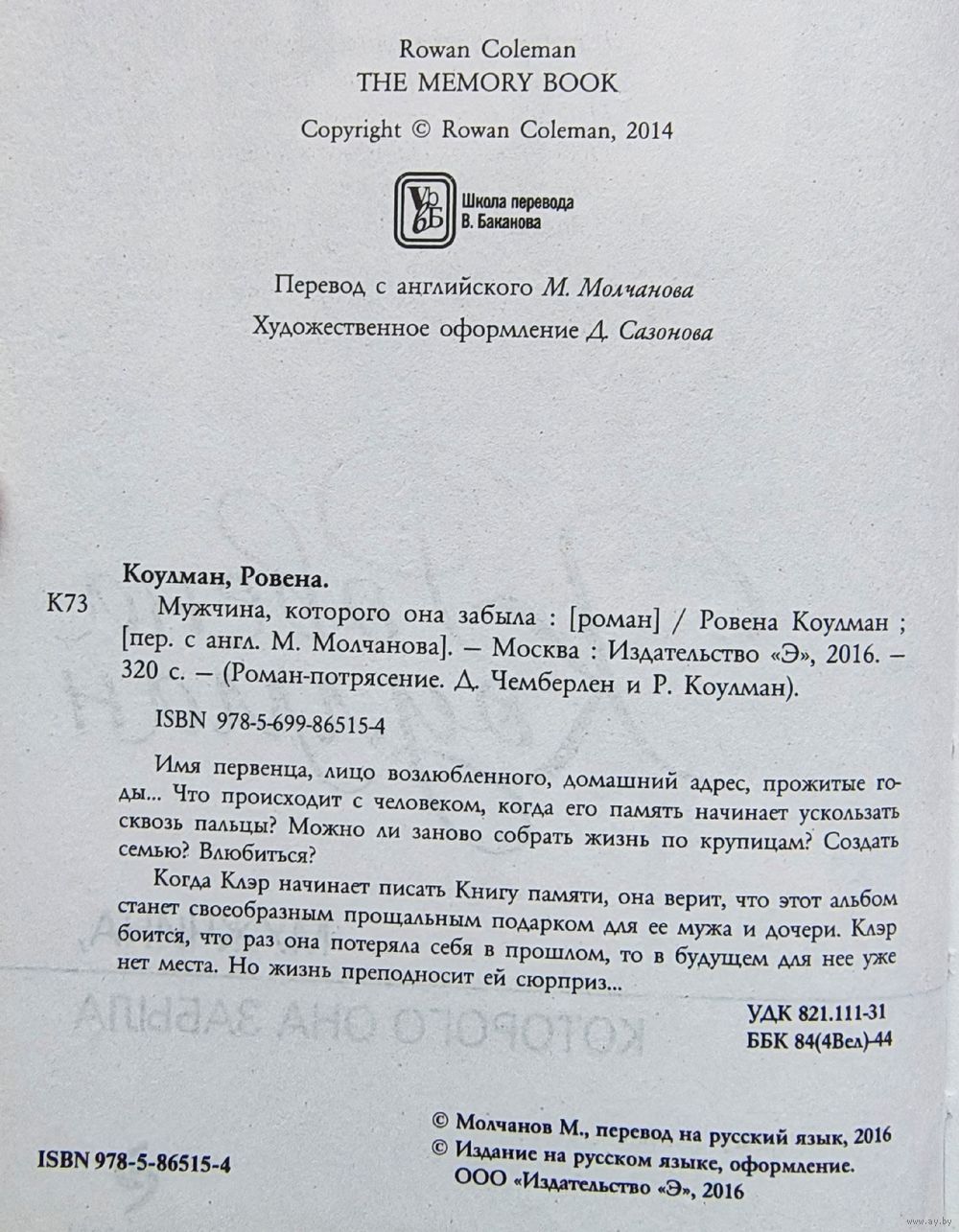 Имя первенца, лицо возлюбленного, домашний адрес, прожитые годы… Что происходит с человеком, когда его память начинает ускользать сквозь пальцы? Можно ли заново собрать жизнь по крупицам? Создать семью? Влюбиться? Когда Клэр начинает писать Книгу памяти, она верит, что этот альбом станет своеобразным прощальным подарком для ее мужа и дочери. Клэр боится, что раз она потеряла себя в прошлом, то в будущем для нее уже нет места. Но жизнь преподносит ей сюрприз…