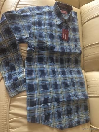 Мужская рубашка на 48-50 размер, новая. Горло 41/42, плотненькая, теплая. 100% хлопок. Длина 79 см, длина рукава 63 см, ПОгруди 58 см.