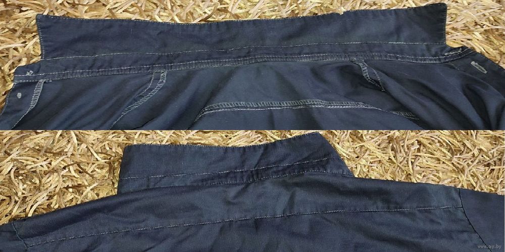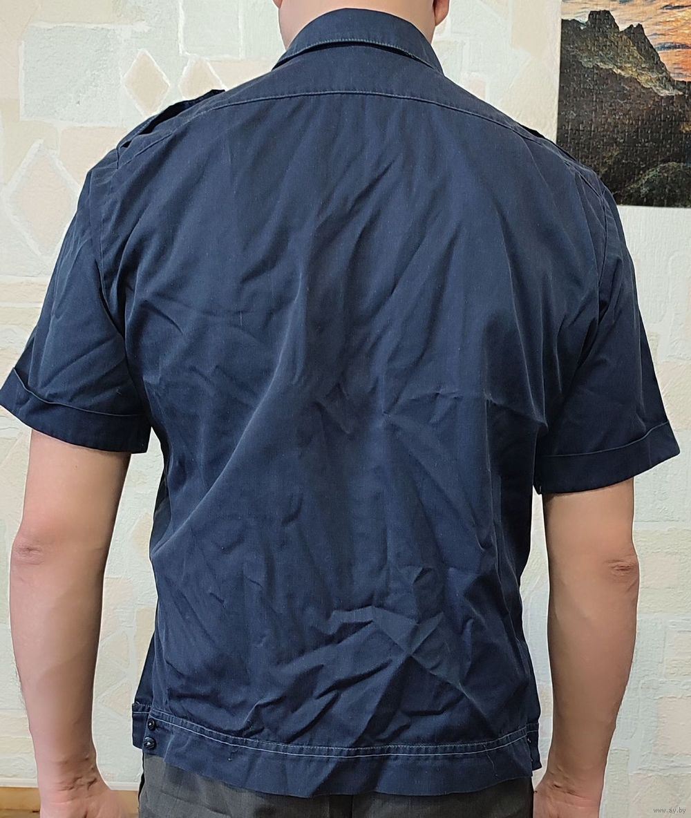 Мужская рубашка синего цвета с коротким рукавом без опознавательных знаков о производителе. Этикетки с составом не сохранилось. Покупалась в Испании в 1984-1985 годах. Рукава нуждаются в подшивке (фото №8-9), все пуговицы родные и на местах